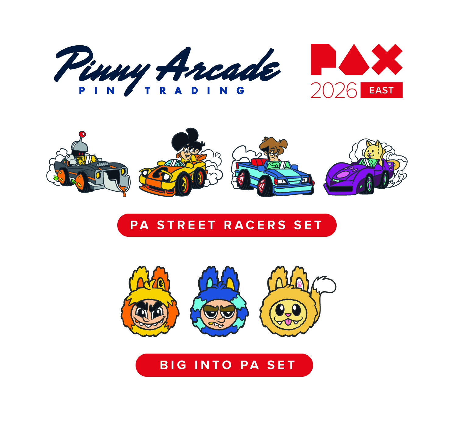 The Penny Arcade Racer & Big Into Penny Arcade Pin Sets