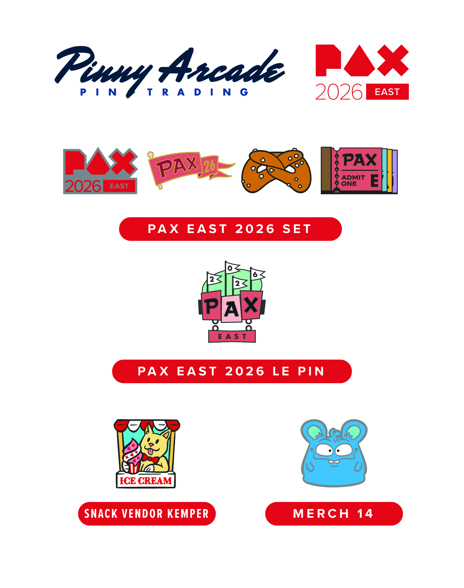 Here is all the info you need for the Pinny Arcade pins on offer at PAX East 2026. We hope you like Kemper pins!