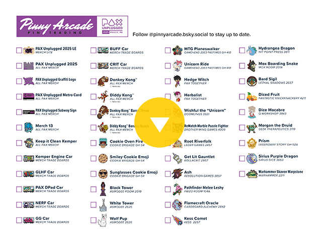 We have a doozy of a PAX Unplugged 2025 Pin Quest. The wealth of partner pins, along with our regular show offerings, is a great way to close out another year of Pinny Arcade. Have a great PAX!